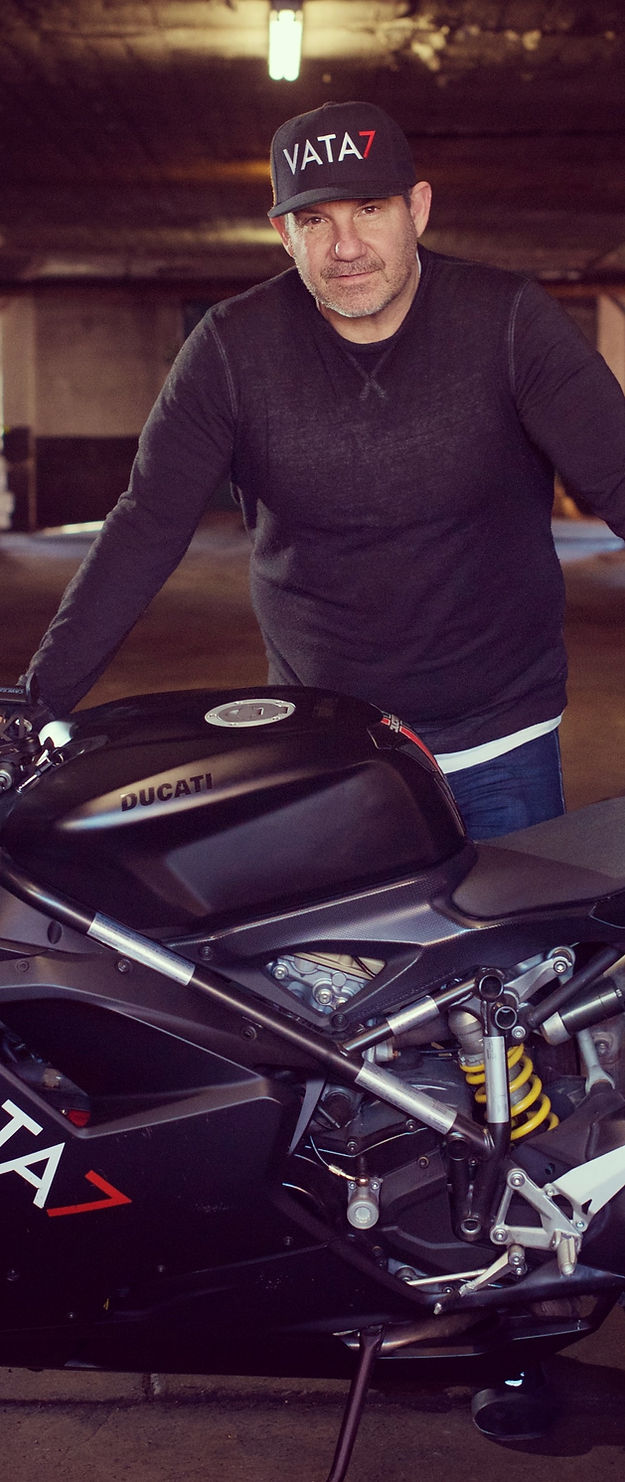 While filming a pilot for a reality TV show in San Diego, I traveled up to North Los Angeles to pick up a custom cafe' racer (Naked Motorcycle) from my buddy Dustin Kott. About 30 minutes into my ride back to San Diego I noticed a car pulled over off to the side of the 405 freeway with a young mom and 3 kids sitting on the hill. Pulling my cafe racer over, I was in her trunk pulling out spare tire parts and heard a huge commotion which pulled me out of the trunk QUICK(!) as I saw a motorcycle slide right past me, sparks flying in every direction, as sound I will never forget. It was night, all I could see were headlights from 4 lanes coming towards me but I couldn't see the rider(s), it was too dark. I ran out into the roadway waving my arms for the traffic to slow and stop while I looked for the rider(s). What seemed like minutes, was maybe 15-20 seconds, the rider was dressed in all black and 4 lanes over from where his motorcycle laid rest. After the paramedics left and the fire crew helped me with the family's flat tire, all I could think about the rest of the way to San Diego (3 hours) was how incredibly invisible I must be to the hundreds of automobiles around me with my very small, 4" by 2" tail/brake light just below the rear of my seat. The next morning VATA7 was born! I invented the World's 1st LED Gear, that wirelessly connects to your motorcycle's lighting system. And, from that point I've dedicated my life creating VATA7 to increase visibility by giving riders the ability to customize and interact with their own, personal LED gear and in that, Illuminating the Human Machine!